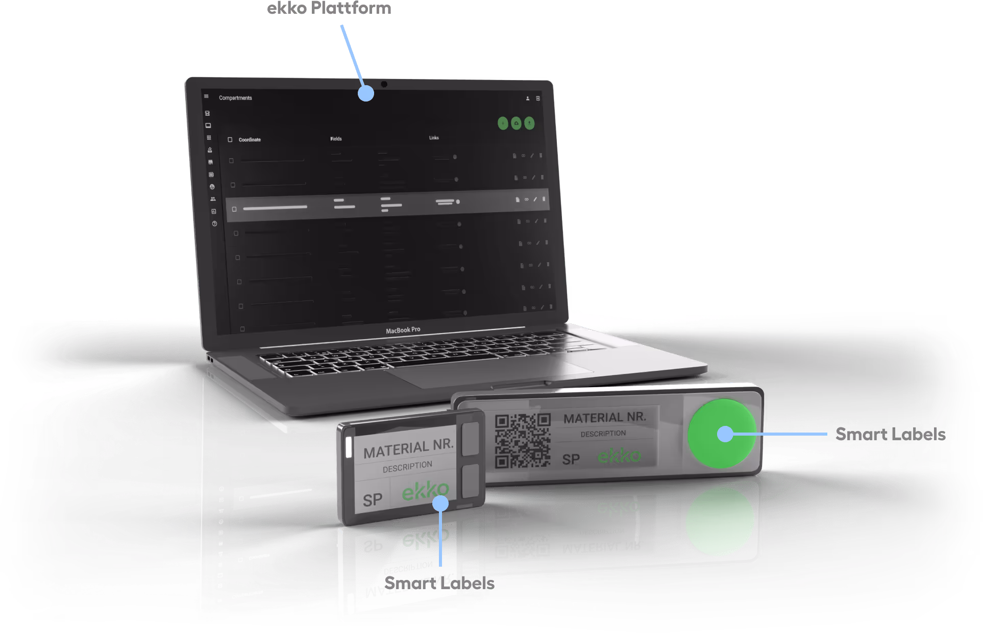 ekko Digital Labeling ermöglicht dynamische Beschriftungen für Regale, Schubwägen und Transportgestelle, wobei sich die Smart Labels automatisch an den aktuellen Inhalt der Fächer anpassen, um jederzeit klare und präzise Informationen zu liefern.